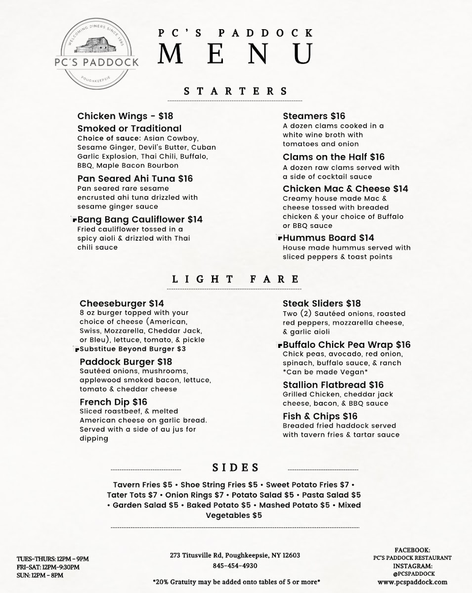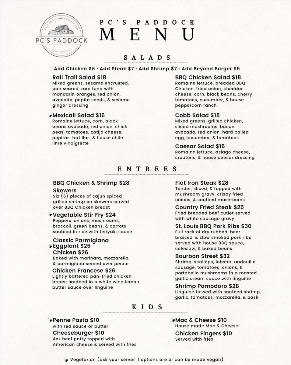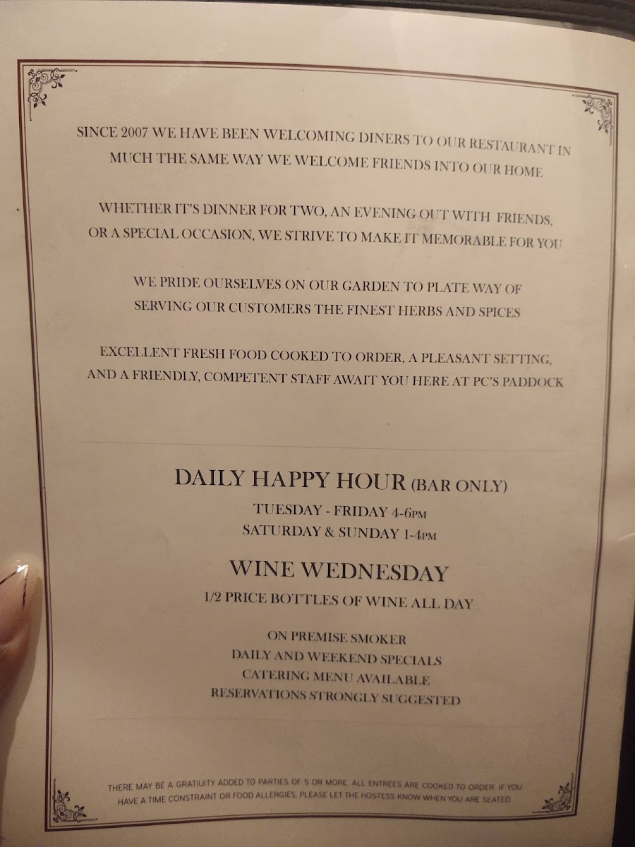 P.C.'s Paddock Menu